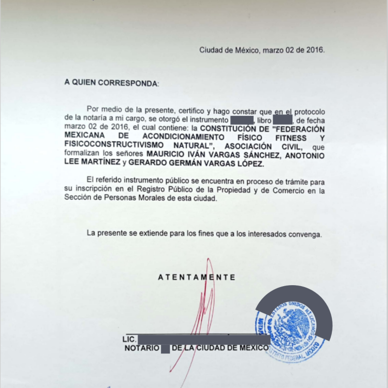 Legalmente constituida desde marzo del 2016, la Federación Mexicana de Acondicionamiento físico, Fitness y Fisicoculturismo Natural A.C. por el maestro en ciencias del deporte Mauricio Vargas, el contador público y maestro en finanzas Gerardo Vargas y el Licenciado en Educación Física, Antonio Lee. esta institución inicia operaciones con la encomienda de fomentar el crecimiento del fisicoculturismo natural en México.